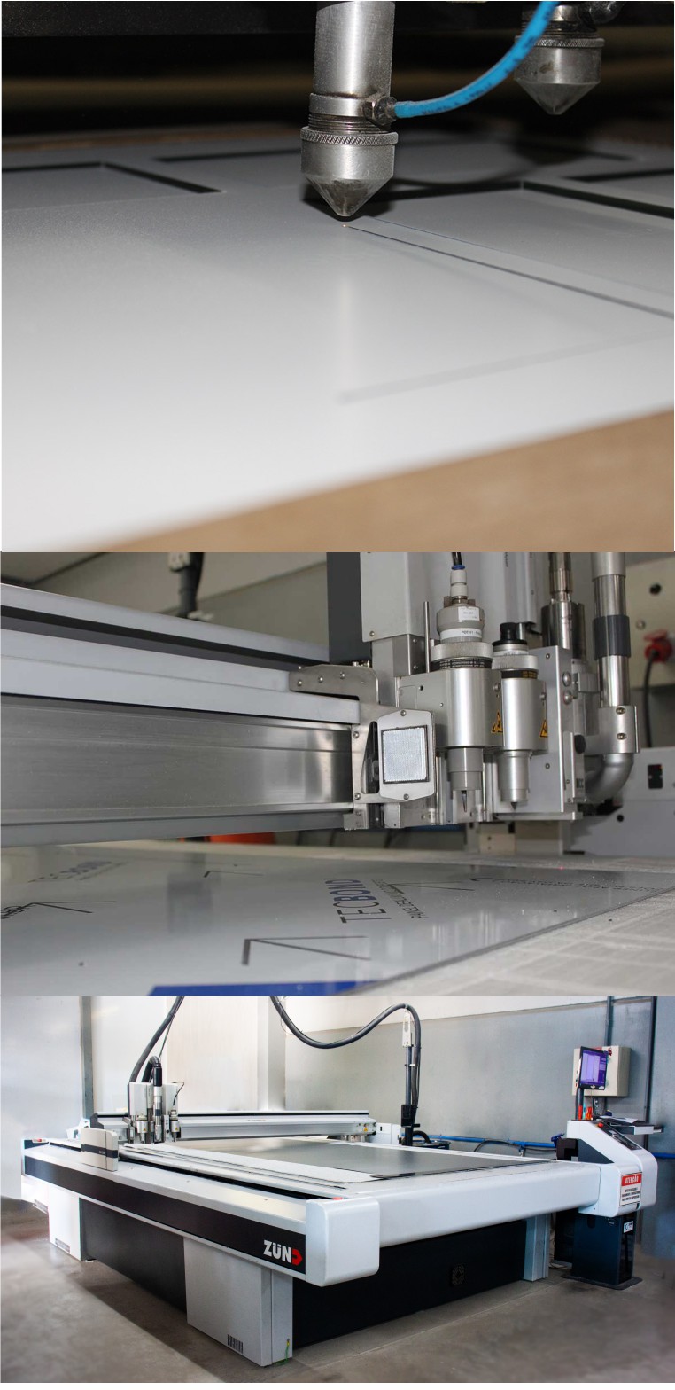 Possuímos uma mesa de corte de origem suíça de altíssima precisão que nos permite CORTAR, VINCAR, DOBRAR e FURAR diversos materiais como: papel, lona, ps, pvc, policarbonato, manta mag- nética, materiais sintéticos, papelão, ecoboard, plásticos corrugados, foam, couro, eva, xps, acrílico, mdf, alumínio e ACM.