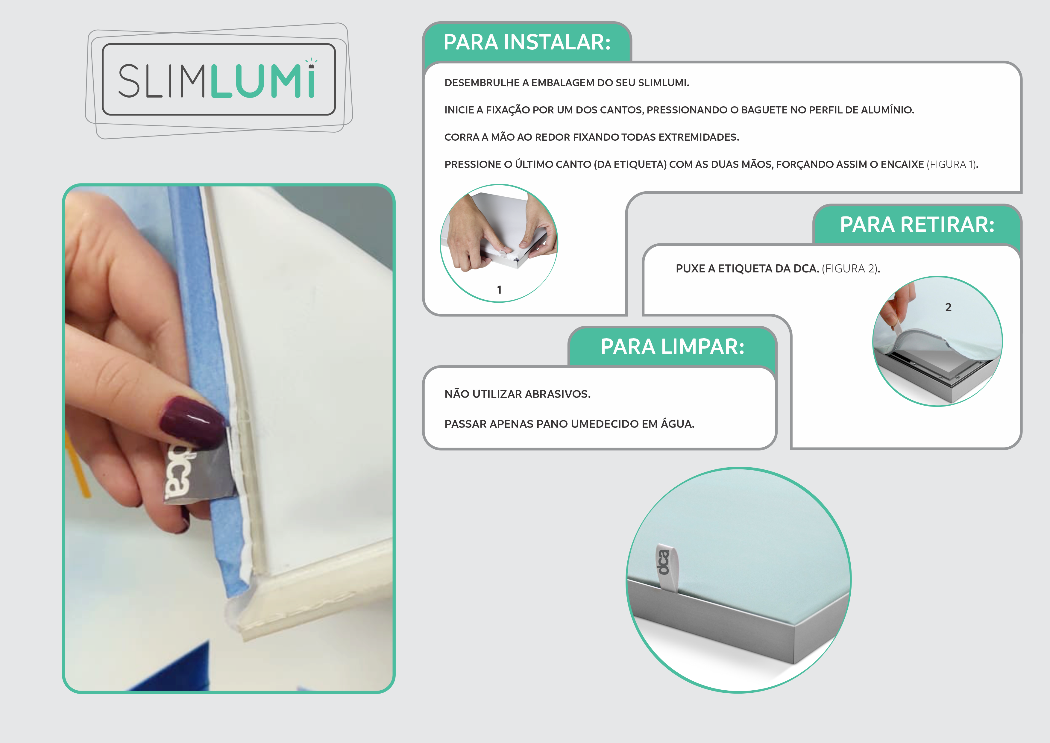 Reutilização: O Slimlumi permite a troca constante da tela tensionada de tecido de maneira prática e sem danificar o material, podendo aplicar diversas campanhas e imagens utilizando a mesma estrutura, garantindo maior retorno no investimento.